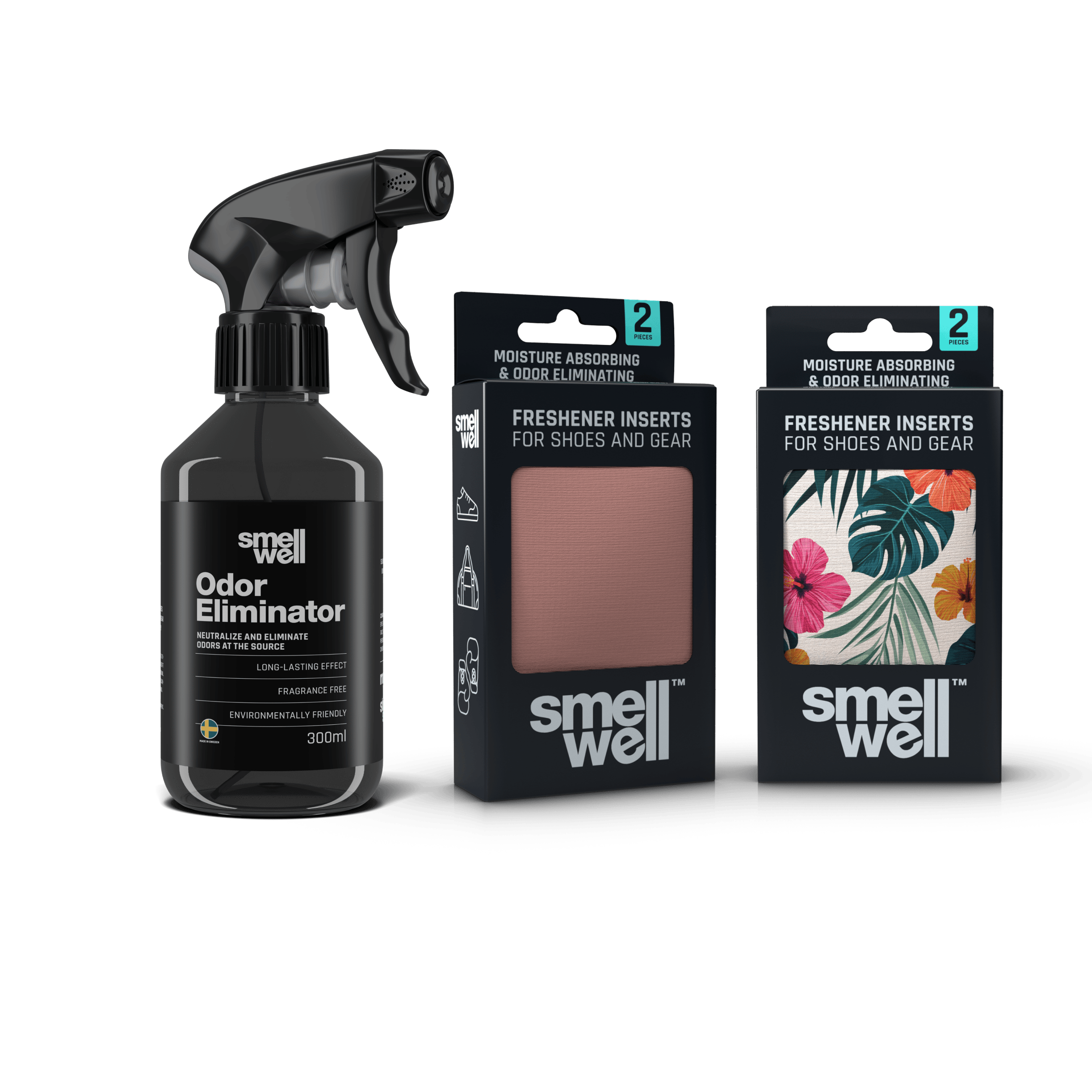 SmellWell Freshener Inserts is a natural 3-in-1 solution that effectively absorbs moisture, removes odors, and leaves a long-lasting fresh scent. Just throw them in your shoes, gear or bag and experience a real difference!