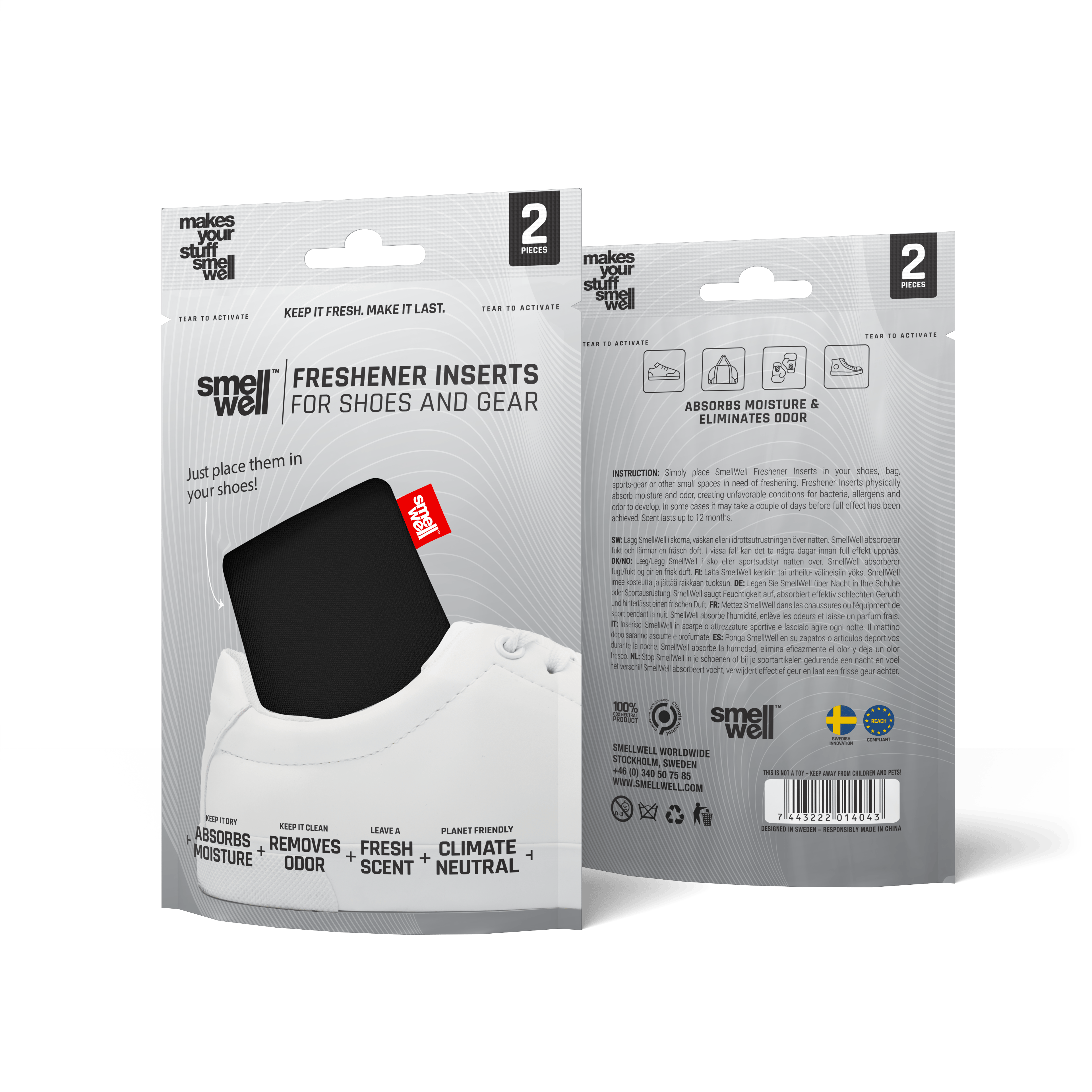 SmellWell Freshener Inserts is a natural 3-in-1 solution that effectively absorbs moisture, removes odors, and leaves a long-lasting fresh scent. Just throw them in your shoes, gear or bag and experience a real difference!